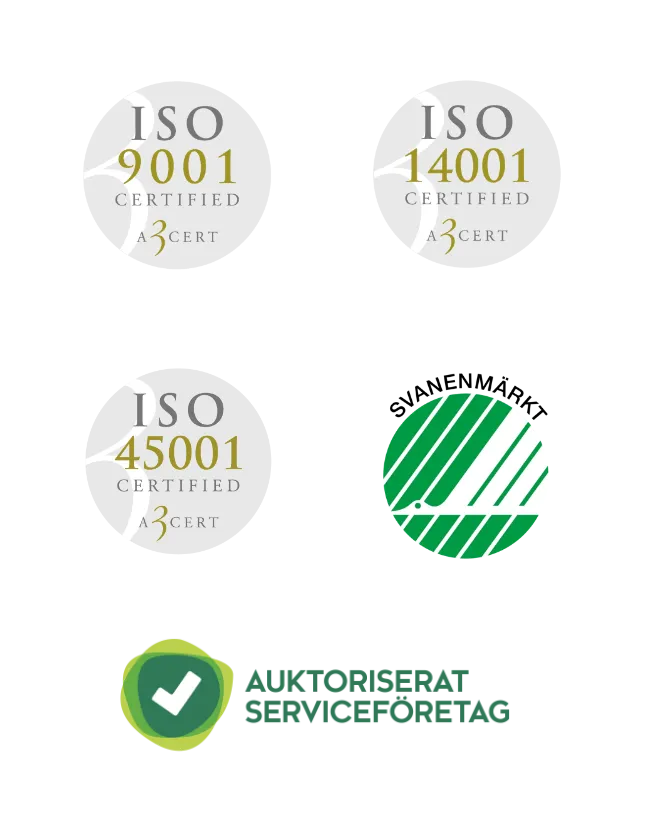 ✔ Svanenmärkt ✔ ISO-certifierad ✔ RUT-avdrag ✔ Persongaranti